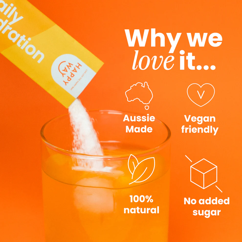 Happy Way Electrolytes Powder is widely available across Australia, making it easy to incorporate into your daily routine. With both Orange and Tropical flavours offered in 30 serve tubs and 30 single-serve sachets, you can choose the format that best suits your lifestyle.